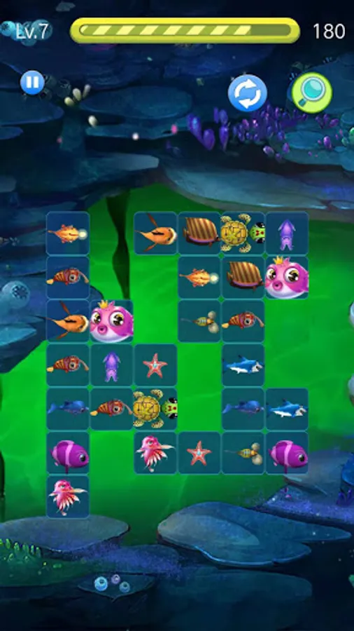 Sea World Lianliankan The game rules are simple, very easy to use, fast-paced, and high-definition and cute pictures. There are a total of 120 levels, and more than 40 kinds of fish are waiting for you to challenge!