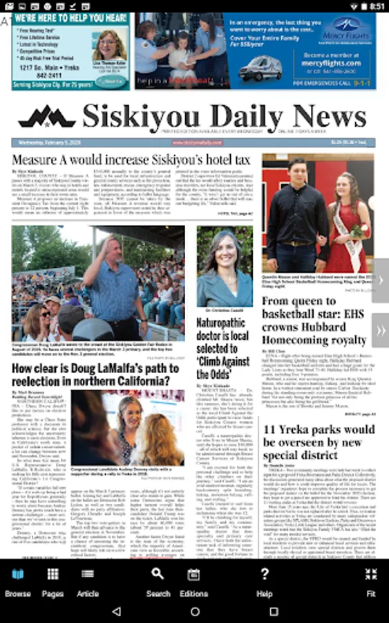 The Siskiyou Daily News ‘eNewspaper’ is an exact digital replica of the printed newspaper. Subscribers can flip through the pages, read stories, photos and view ads just they appeared in print.