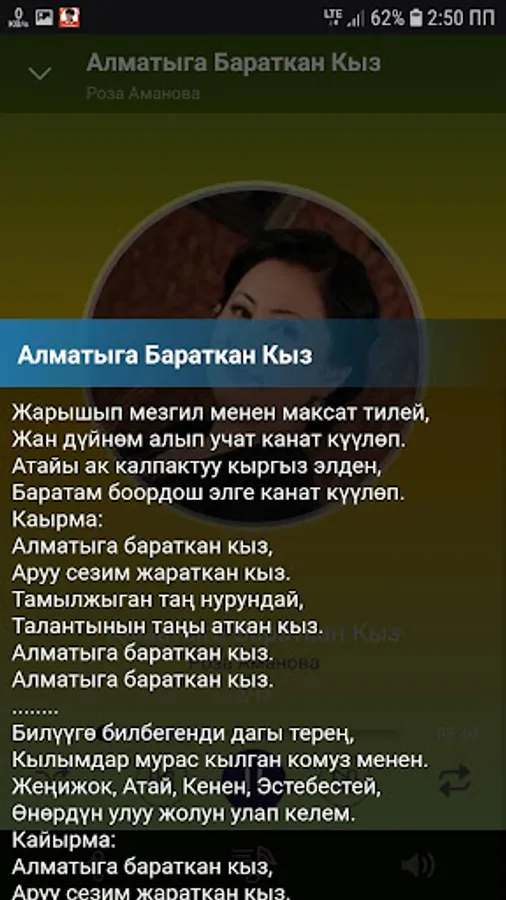 Roza Amanova (born February 23, 1973, in the village of Toktogul, Jalal-Abad region, Kyrgyzstan) - People's Artist of the Kyrgyz Republic, laureate of the Kyrgyz State Prize. Toktogula, member of the Union of Composers of the Kyrgyz Republic, Chairman of the Foundation of Kyrgyz Traditional Music, Doctor of Arts and Sciences in the field of Kyrgyz folk-professional traditional music, ethnomusicologist, professor, famous Kyrgyz singer-songwriter, single , komuzistka, winner of many state and international competitions.