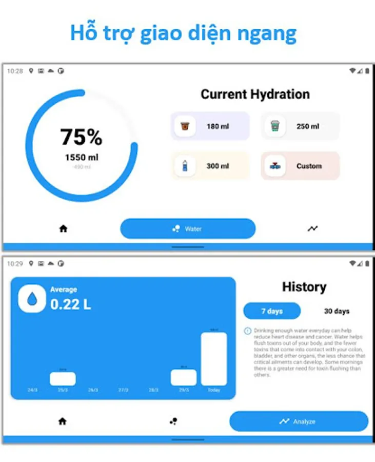 Water Reminder – Water Reminder is an application that helps you to record, track and remind you to drink water. With an optimized design for the user experience, the application easily helps users to easily interact and grasp the main functions from the first use. If you often forget to drink water, want a healthy body, this is the application you are looking for. With smart reminder mode, the application will help you not forget to drink water even when you are engrossed in work.