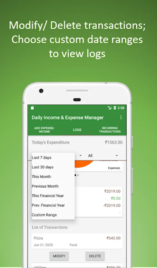 8. Manage recurring expenses or incomes with daily/ monthly recurring transactions feature