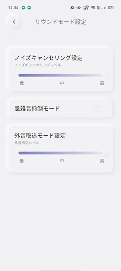 ON/OFF and level adjustment of noise canceling and external sound intake mode, gaming mode that reduces audio delay,