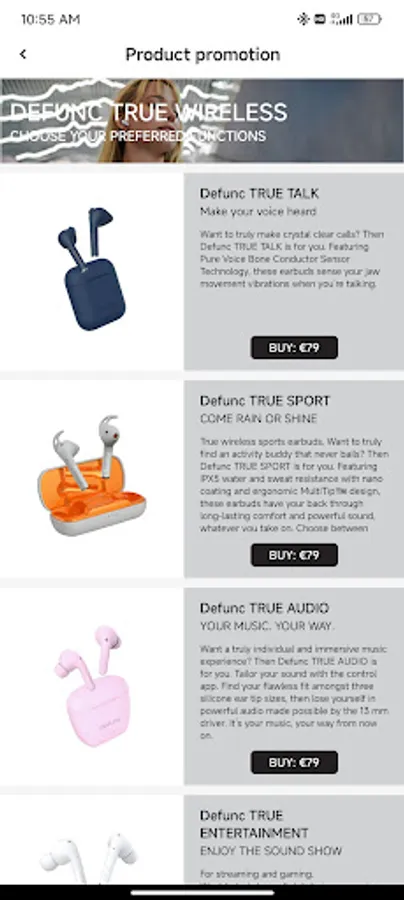 As a Defunc user, you will always have the opportunity to buy other Defunc products at attractive prices through shop-links for products relevant for your love of music and other streaming experiences.