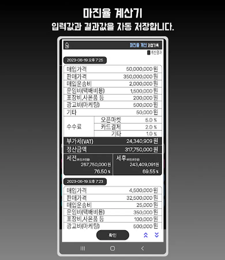 The results of both the Margin Calculator and the Sales Price Calculator are automatically and permanently saved as soon as you view them.