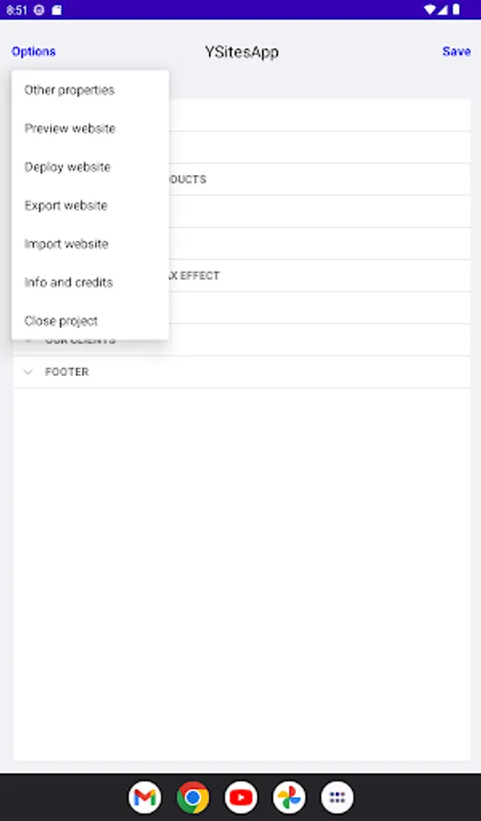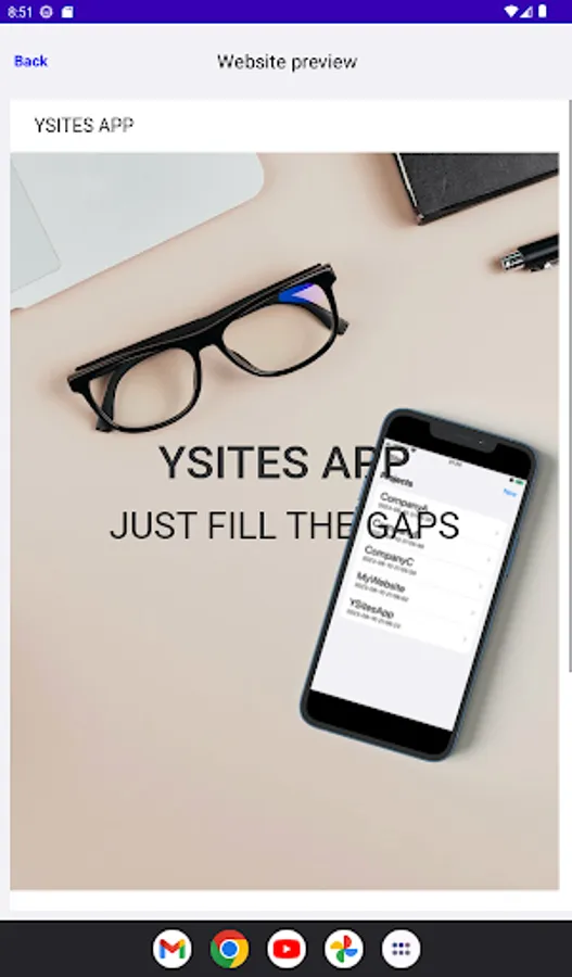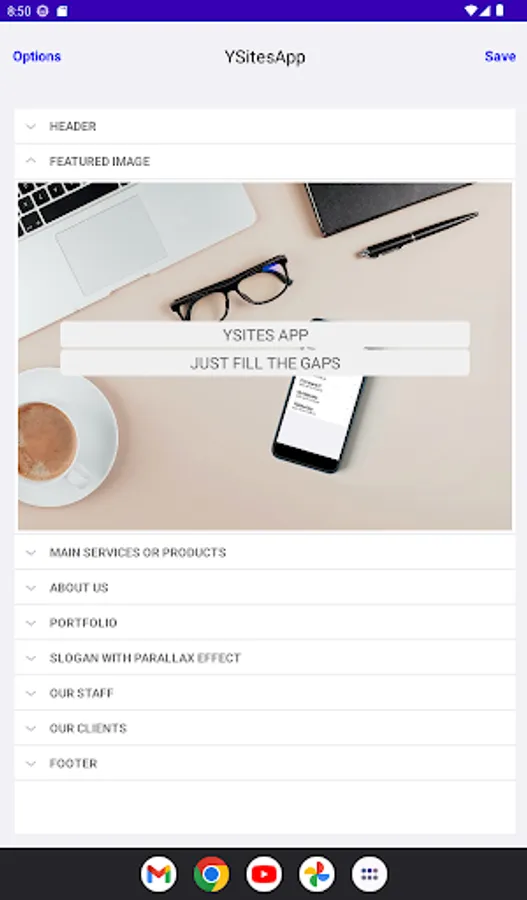 YSites app is a feature rich app that allows you to create and deploy your personal website, your company website or even your website business (including development and hosting). Just fill the gaps. YSites app based websites support header with menu, featured image, featured products and services, about us section, portfolio, customers, social networks and many more. On the other side, if you are looking for a web based business YSites app supports the creation of an unlimited number of projects and provides easy deployment. This means that you can be paid for web development and for web hosting.