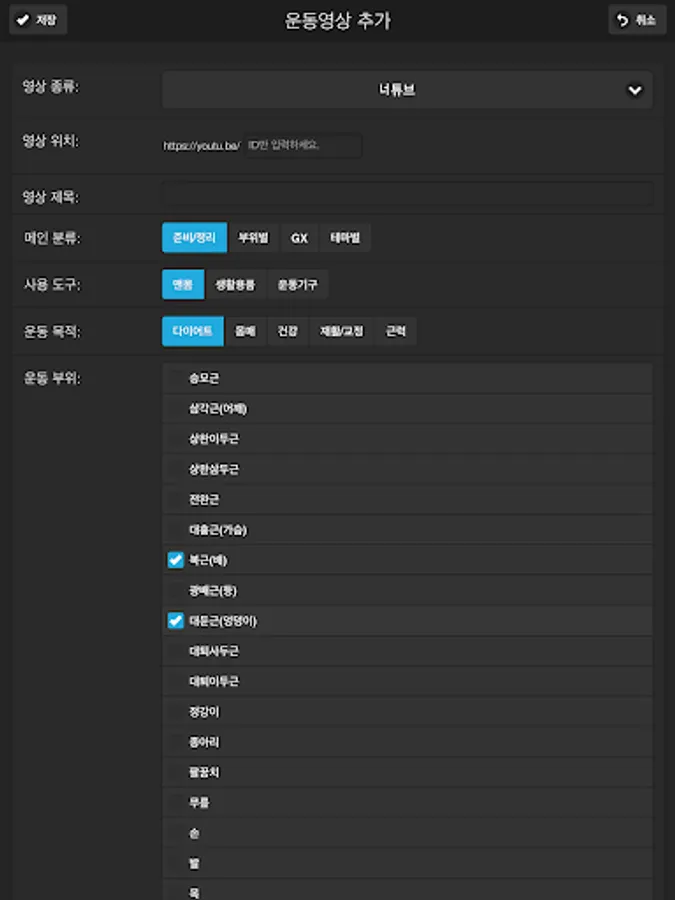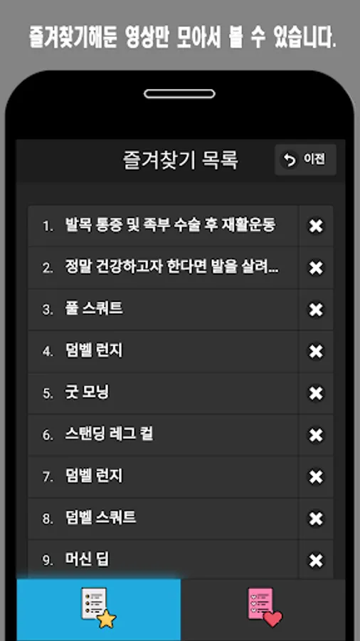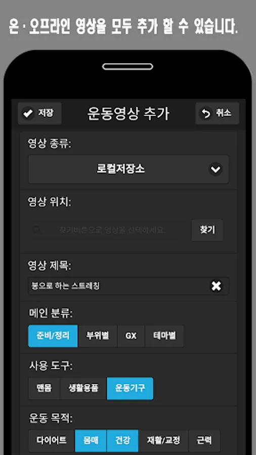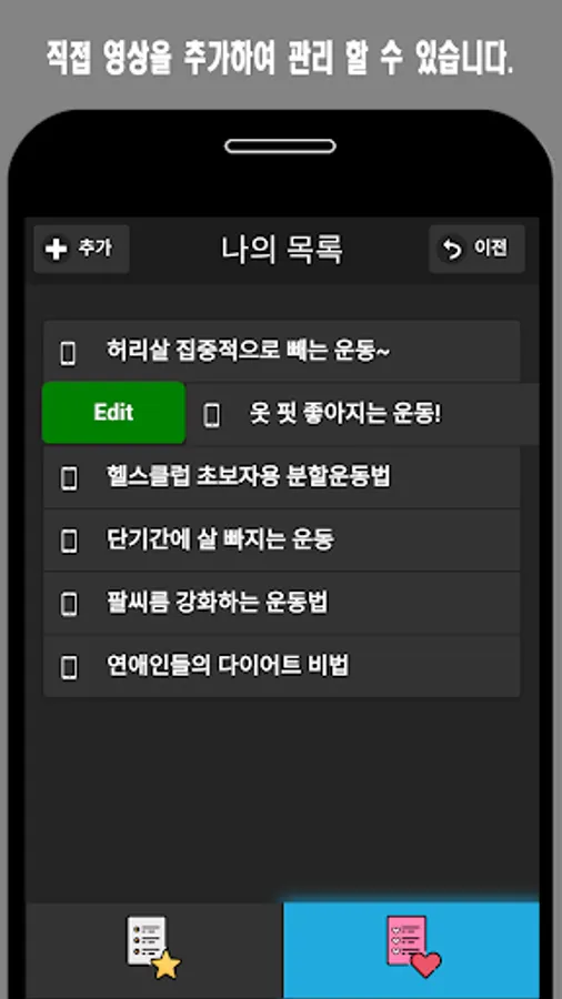 In addition, you can register exercise videos directly in the local storage of your smart device or videos in the online app and use them in a classified state, or you can select your favorite videos and manage them separately.