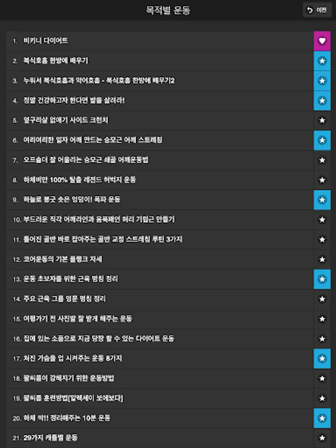 4. Exercises by purpose can be classified into exercise videos for specific purposes, so you can watch and follow the videos that fit the purpose of the exercise.