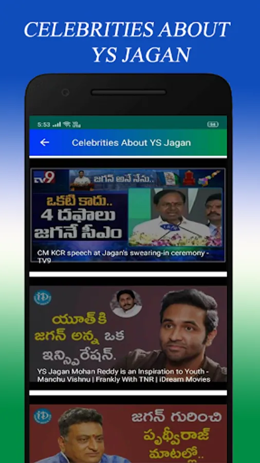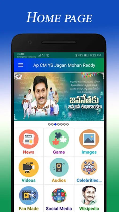 This App will provide Information about YS Jagan.This App will provide Latest News, Latest Images, Latest Videos, YSRCP Schemes, Fan Made Videos, Celebrities About Jagan Videos, Social Media, Ys jagan Wikipedia..