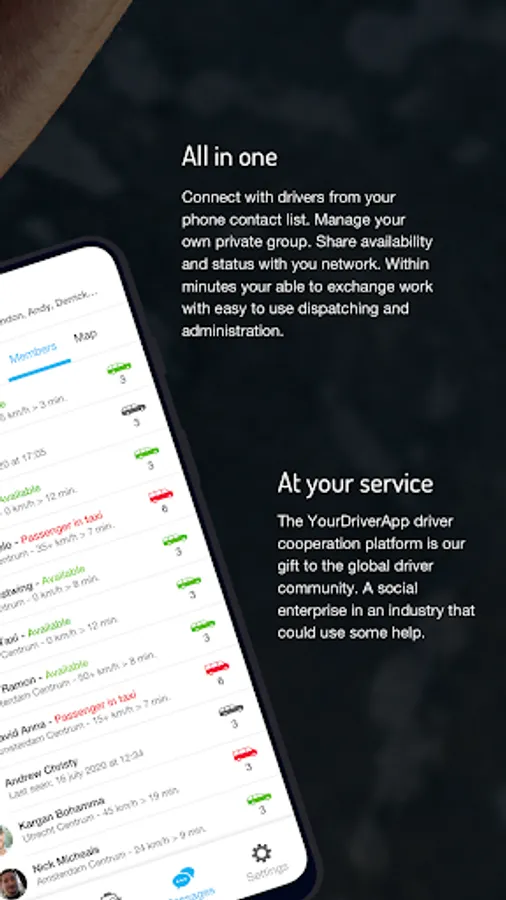 Our platform technology facilitates cooperation amongst independent drivers by helping them to join forces in private groups and together be successful in servicing customers in their local market. The free app enables you to connect with your network of drivers straight from your phone contact list. Within minutes you are able to see who’s available and dispatch your first jobs based on availability at the entered pickup location. The app registers all relevant information regarding pickup and drop-off times and actual route.