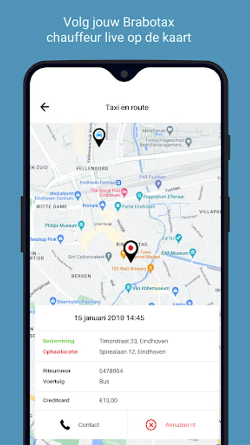 Do you ever use a taxi in Eindhoven? Download the Brabotax app now. The only app you need to quickly get from A to B in Eindhoven and the surrounding area.
