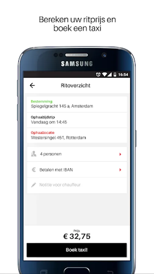 Order a taxi with one touch of a button. The GPS in your smartphone instantly know where you stand, so ordering is easy. You can manage the reservation itself and any change in the app. Because you can track the taxi on the card, you know exactly when it is upon us and you will never have to wait unnecessarily! Login do simply with your social media account, or simply fill out your details. Extra handy: Save your home address as a favorite!
