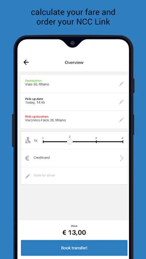 Then select your vehicle fitting your needs in terms of passengers and bags.
