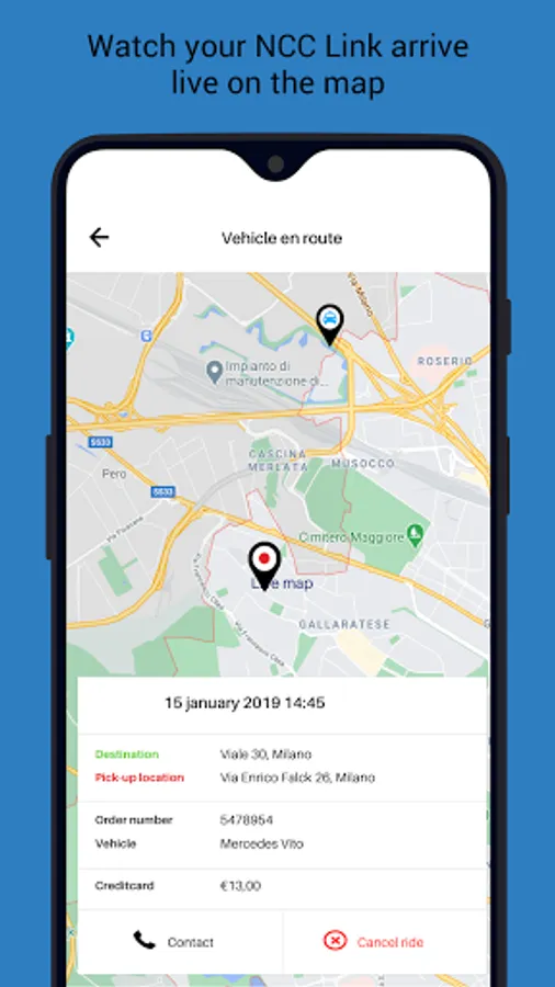 -Receive emails with your booking recap. Emergency contact details, name and driver’s phone