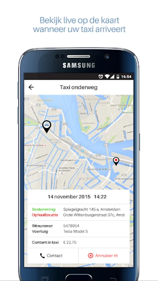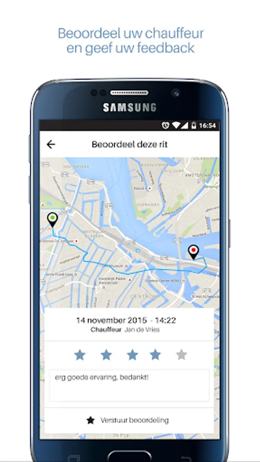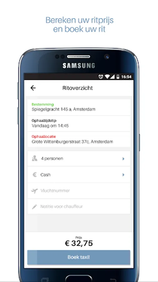 Order a taxi with one touch of a button. The GPS in your smartphone instantly know where you stand, so ordering is easy. You can manage the reservation itself and any change in the app. Because you can track the taxi on the card, you know exactly when it is upon us and you will never have to wait unnecessarily! Login do simply with your social media account, or simply fill out your details. Extra handy: Save your home address as a favorite!
