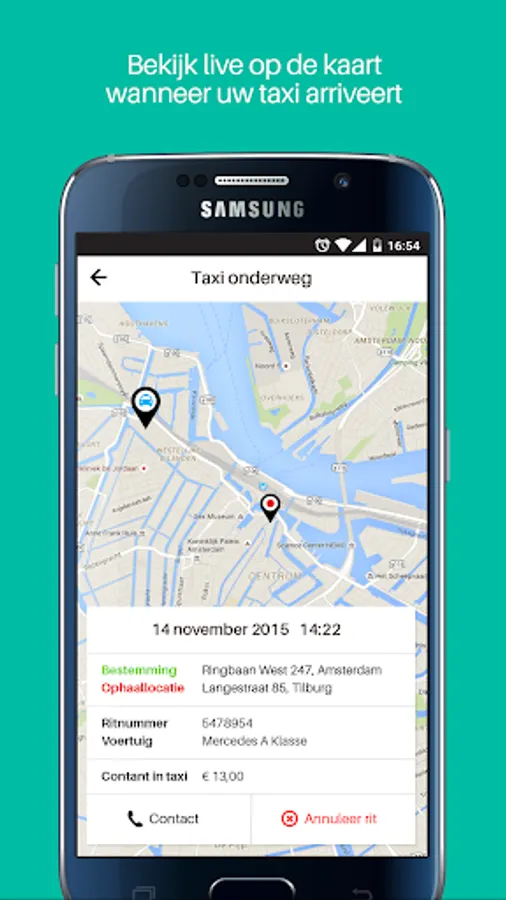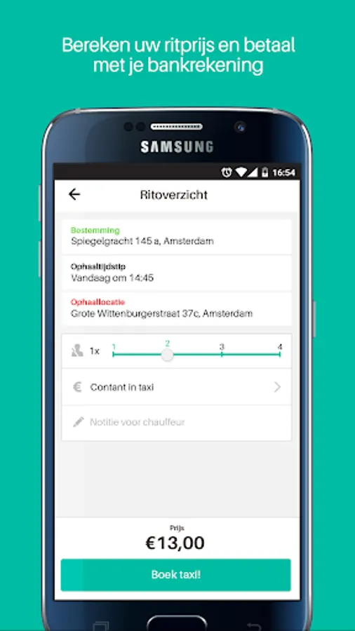 Order a taxi with one tap. Your can set your pick-up location with a single tap, or Google search for an address manually. By optionally setting a drop-off point, you get a reliable quote for your trip. Follow your approaching taxi on the map. So no more needless waiting. Change of plans? You can easily manage your bookings and reservations in the app and view past trips as well.