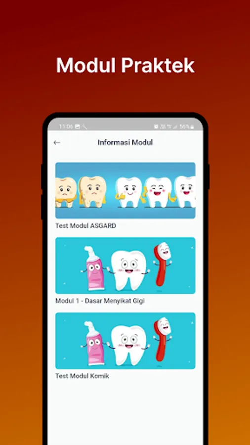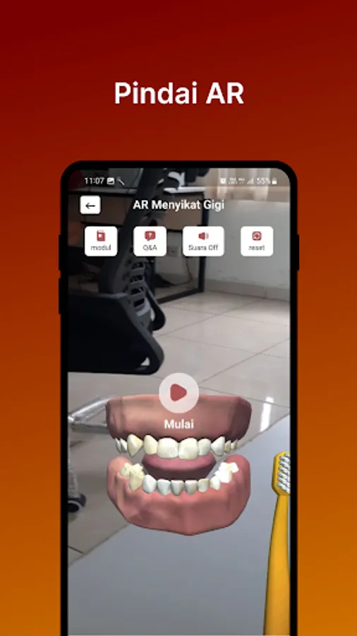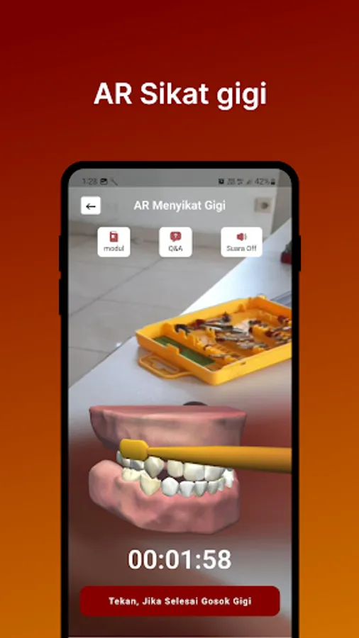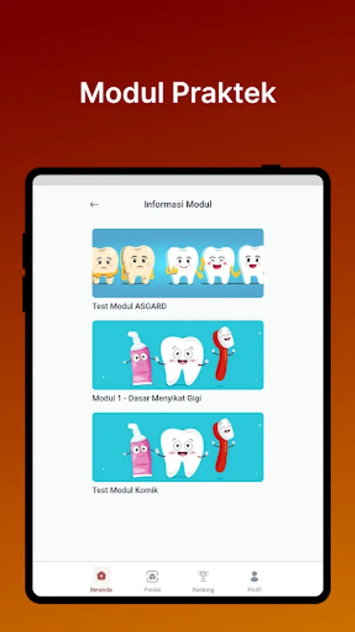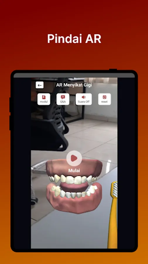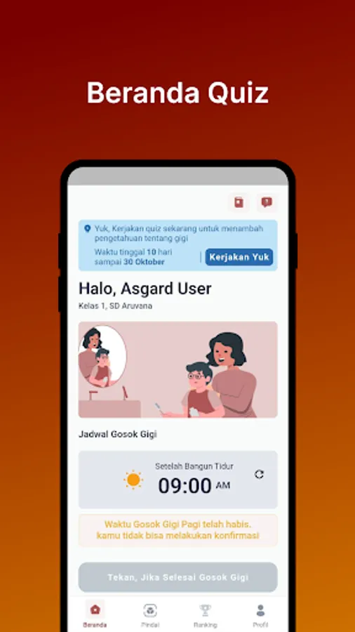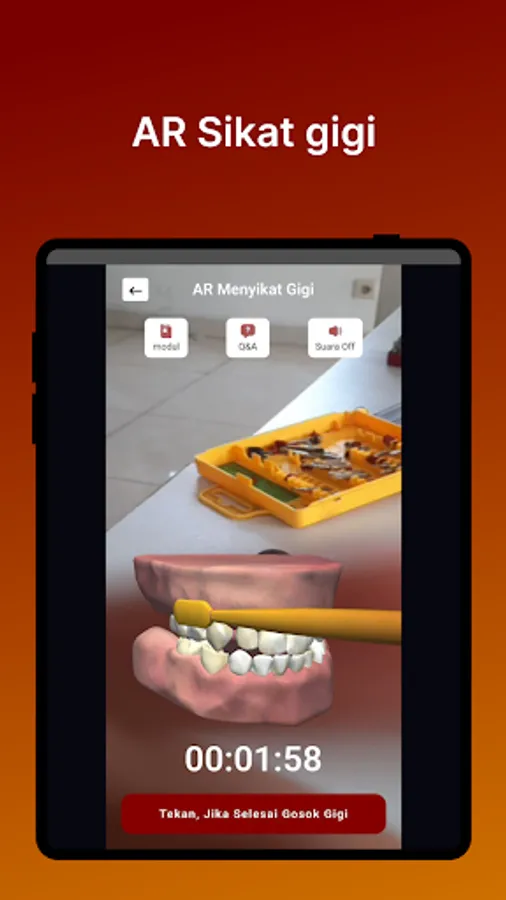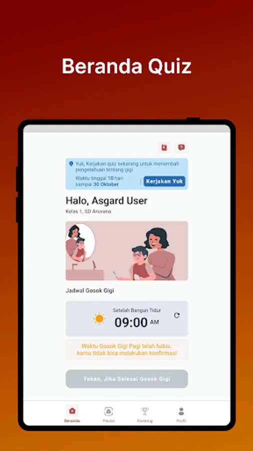 ASGARD (Ragam Dimensi Children's Toothbrush Application) is an application jointly developed by FKG UGM and Aruvana which is part of the PINTER TUNTAS BERES Project (Integrated Program for Healthy and Caries-Free Indonesian Children). This application uses augmented reality technology to maximize the learning experience of brushing teeth for children. Learning progress can be monitored by teachers from schools that are part of the PINTER TUNTAS BERES project.