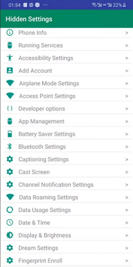 This app offers 2023 shortcuts to the Android settings app, like accessing the WiFi or the Bluetooth configuration.