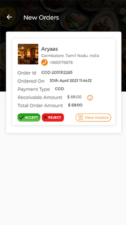 3.View, Accept / Reject newly arrived orders