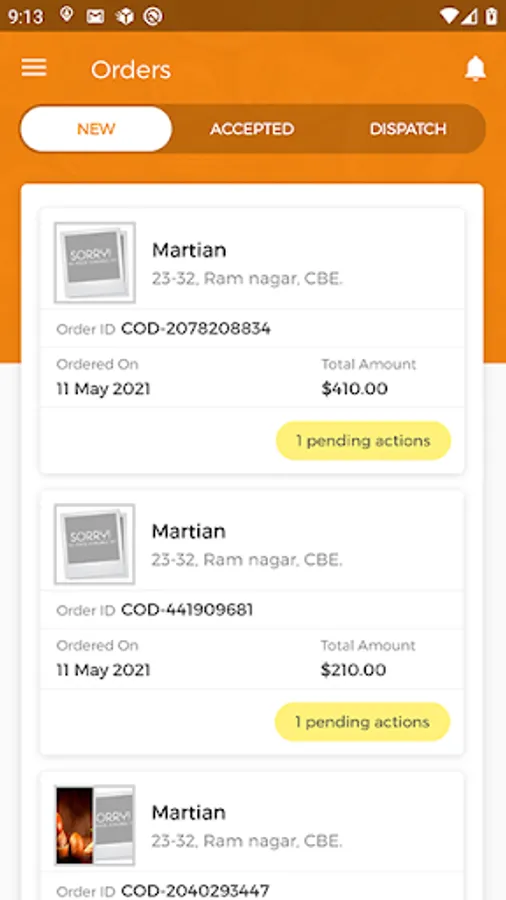 Managers can check the new order arrivals in the app and accept or reject orders based on their preferences. The orders accepted by the managers moved to the preparation process.