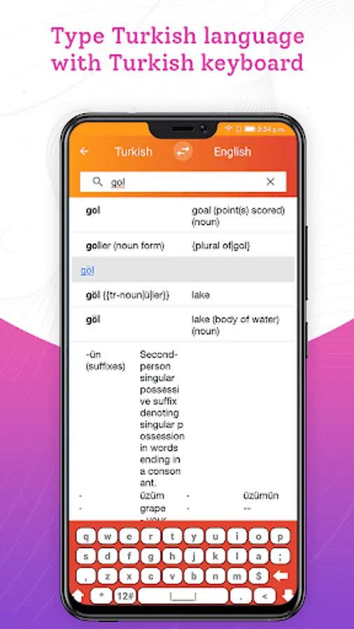 ● In-built Turkish keyboard is helpful to type in Turkish English Dictionary app