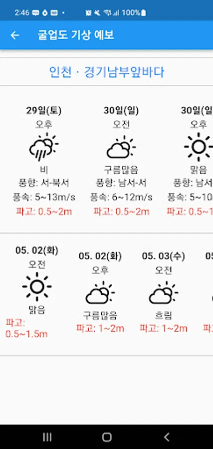 Accurate weather forecast: You can check the current and predicted weather conditions in Incheon. The app ensures safe travel by providing real-time weather updates and allows you to change your travel plans as the weather changes.