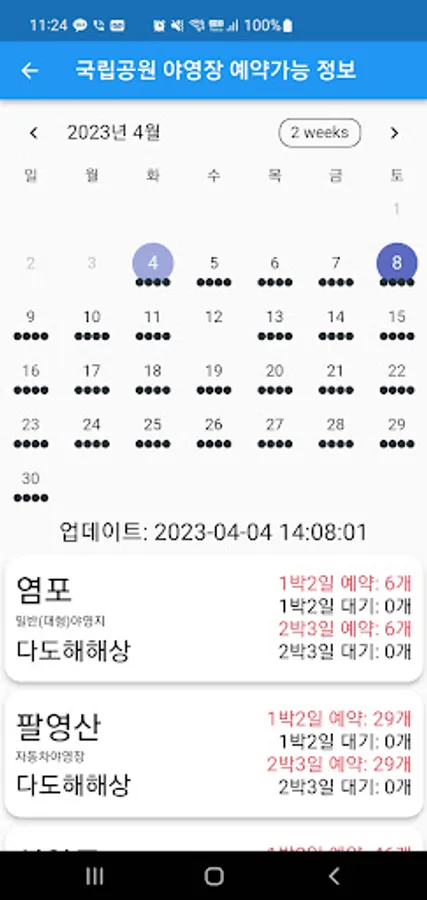 'National Park Vacancy is an optimized app that provides information on national park campsites and shelter vacancies, and is an essential tool for camping enthusiasts and hikers. With this app, you can easily check real-time vacancy information for campsites and shelters in various national parks.