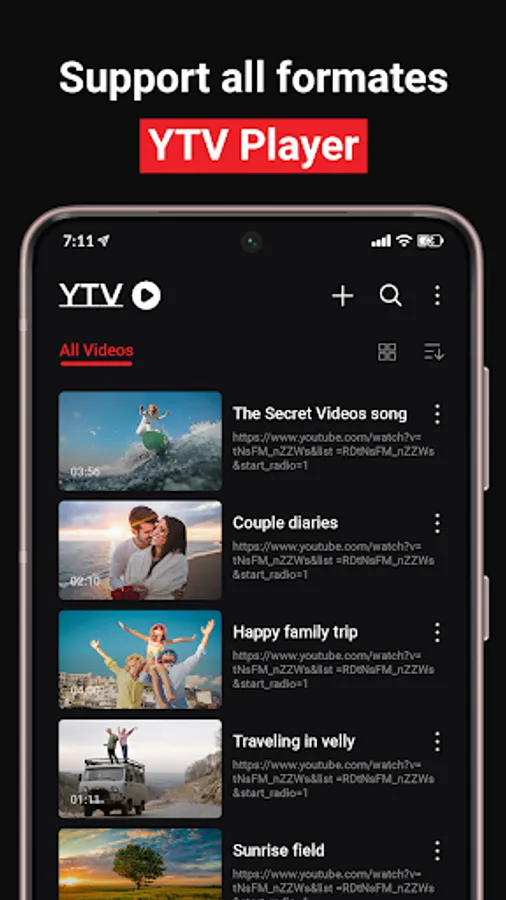 YTV Player is a simple M3U link player for Android. With this app, you can play IPTV links and watch content anywhere. The app does not include any links, so you will have to add them manually.