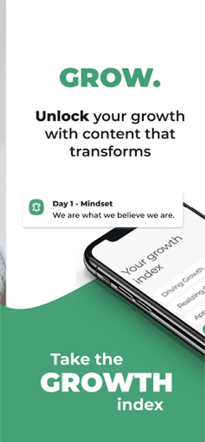 Build and sustain growth habits through our daily audio content that transforms, while achieving your goals through our goal tracking architecture and approach your personal growth with renewed energy as you keep active.