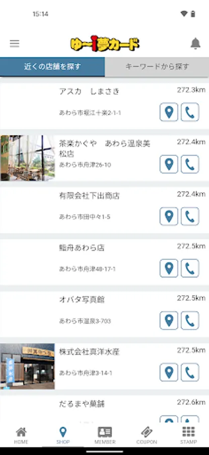 This is the "Yu-i Yume Card" app that can be used at shops in Awara City, Fukui Prefecture.