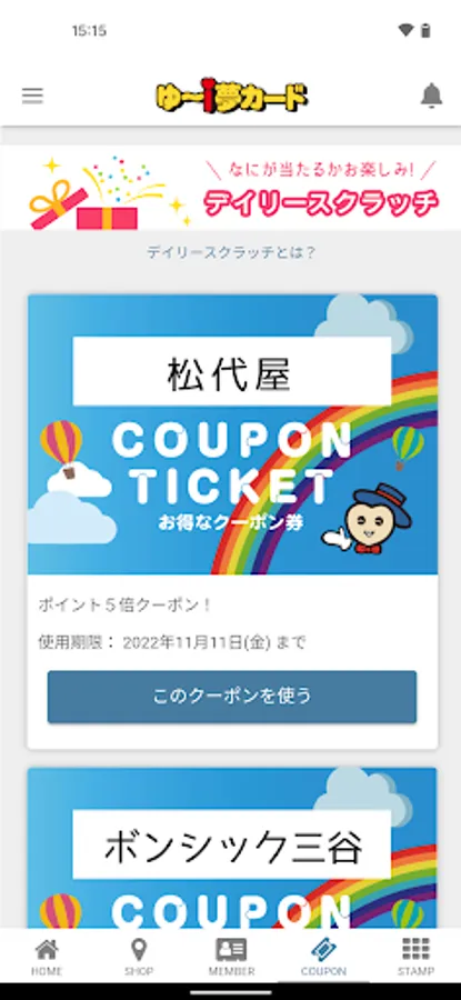 Accumulated points can be used for shopping, and can be used for exciting events such as exchanging for advantageous bathing coupons. The discount coupons issued by each store are also very popular.