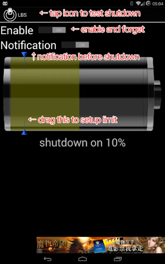 3. If you toggle notification on,you will hear "beep beep"before shutdown.and you have 2 mins to bright screen on to auto cancel this time shutdown.