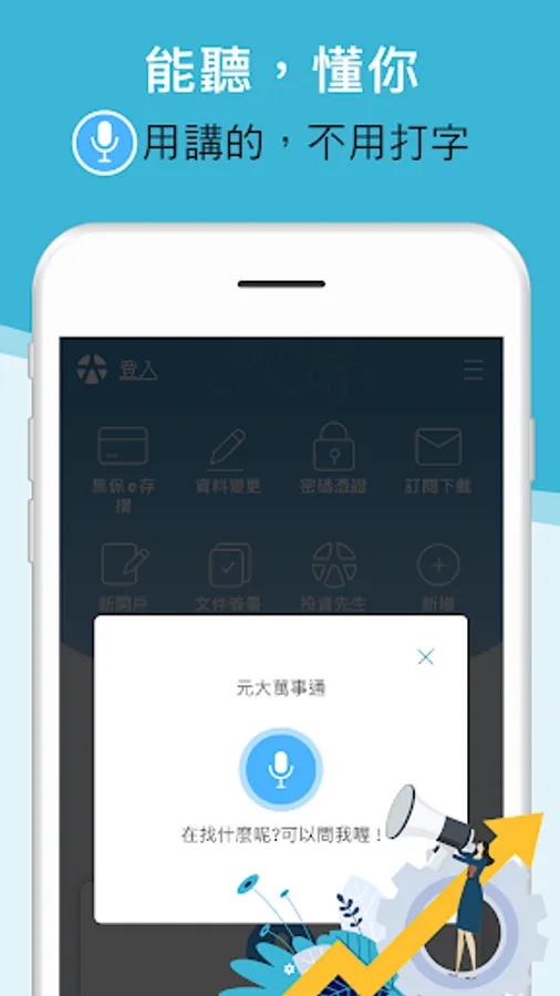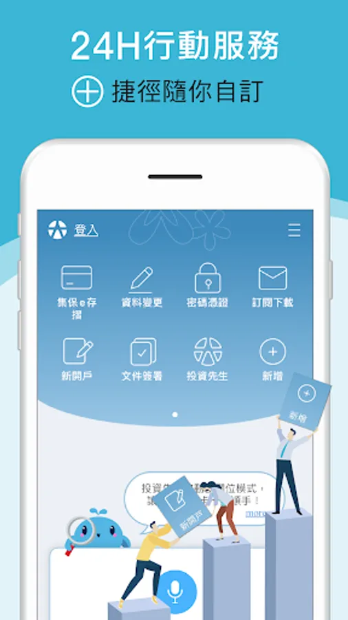 Provides more than 12 functions most commonly used by investors, such as password unlocking, certificate application, electronic document signing, modification and change of information, online account opening, etc., so that the master mobile branch can serve you!