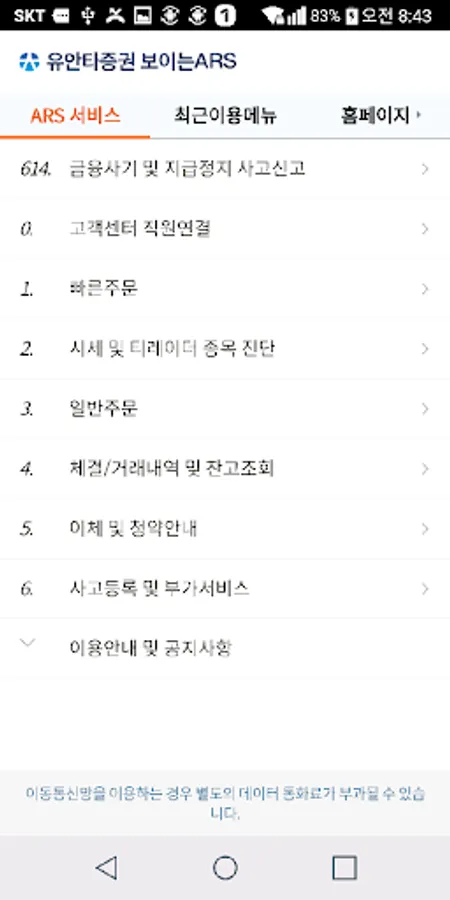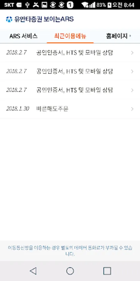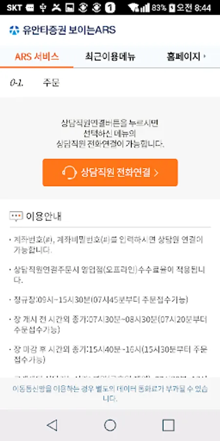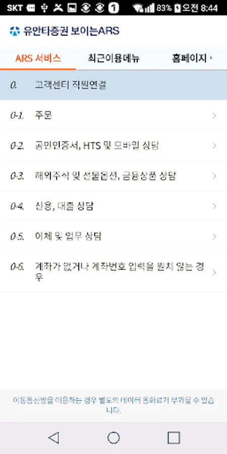 2. Check the frequently used menu through the recently used menu, you can connect directly to the counselor or ARS connection.