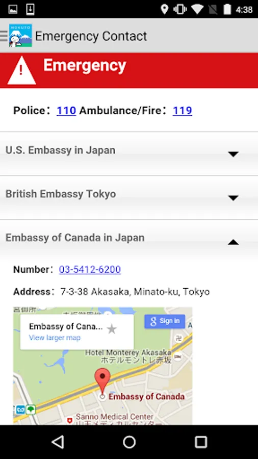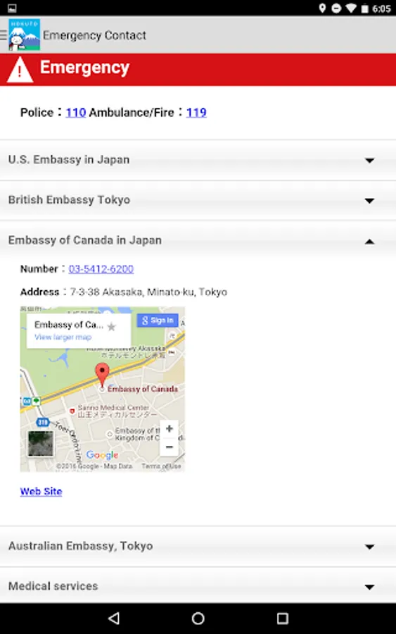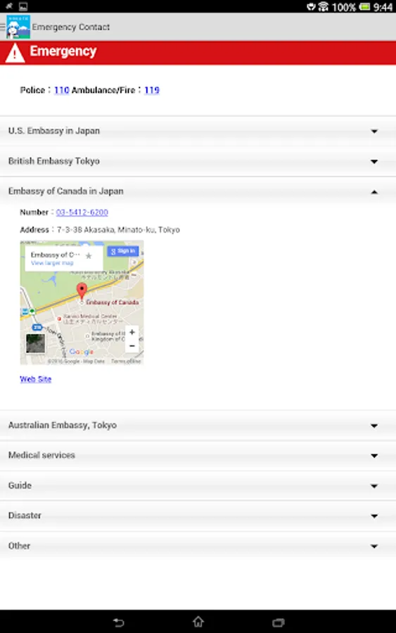 Find a list of phone numbers to police, hospitals and embassies - just in case.