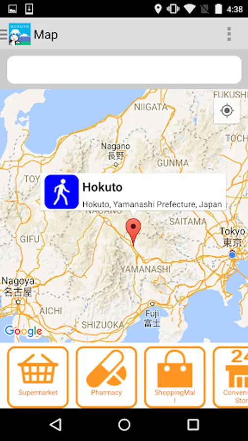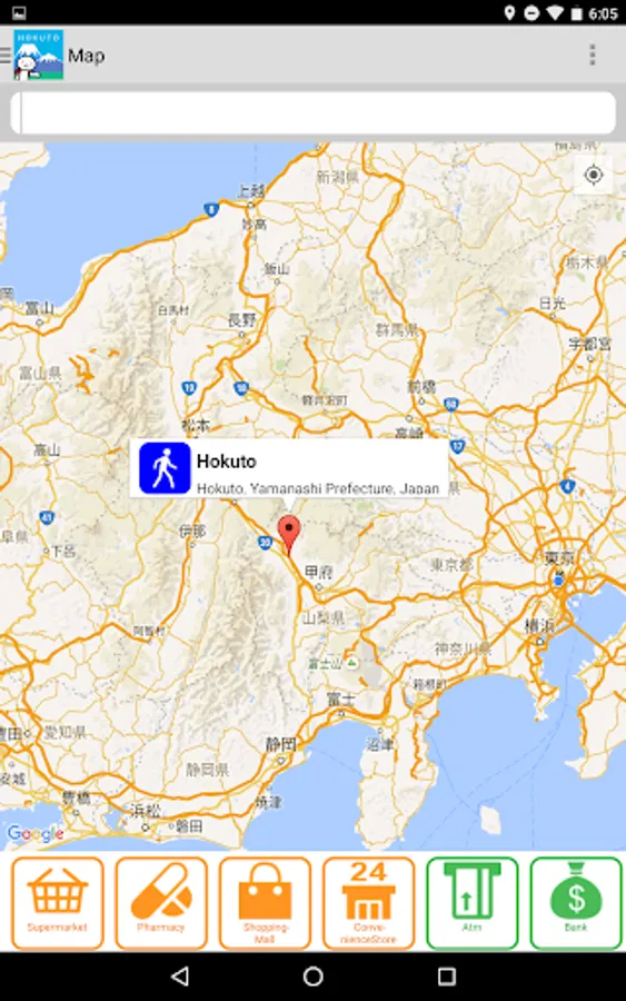 This app was designed to serve as a guide for foreign tourists visiting Hokuto, a city in northern Yamanashi Prefecture on the border with Nagano. Hokuto is surrounded by mountains, with the Yatsugatake to the north, the Southern Alps stretching off to the southwest, and Mount Fuji visible to the south.
