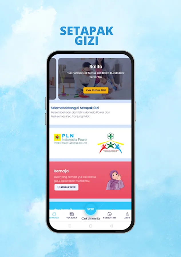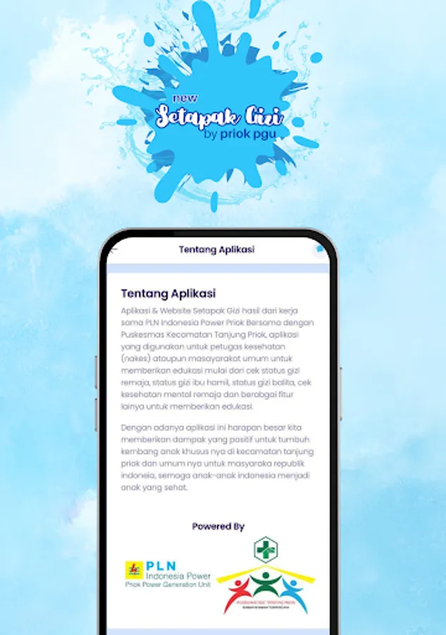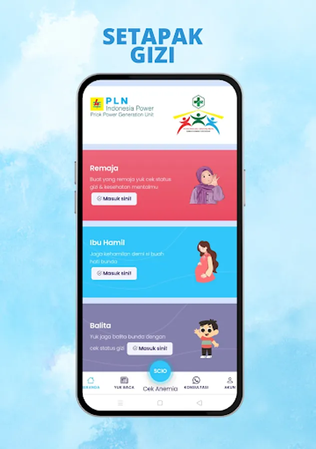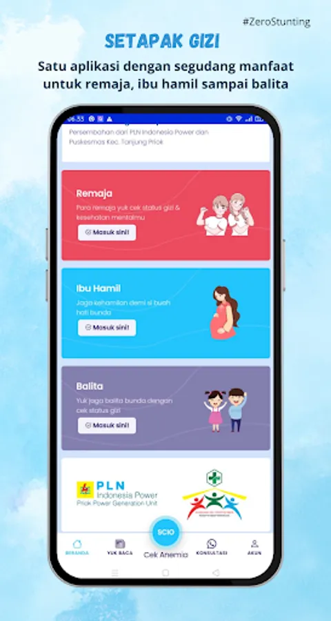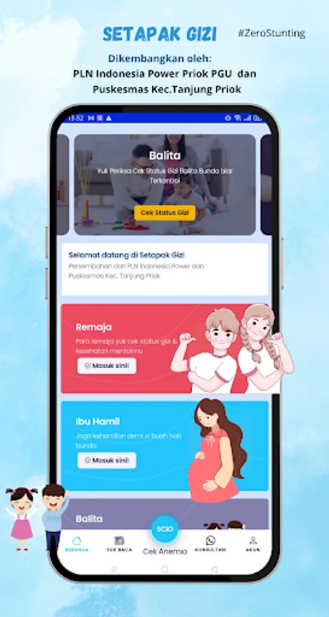 Setapak Nutrition application in collaboration with PLN Indonesia Power Priok PGU & Puskesmas Kec.Tanjung Priok, with various features such as: