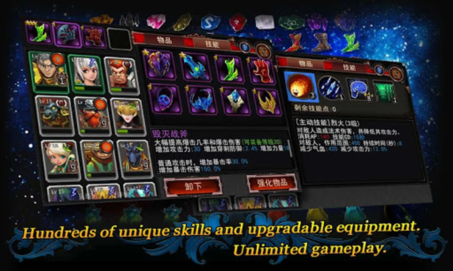 *Hundreds of different items and gems to discover, use, and upgrade for strategic victory.