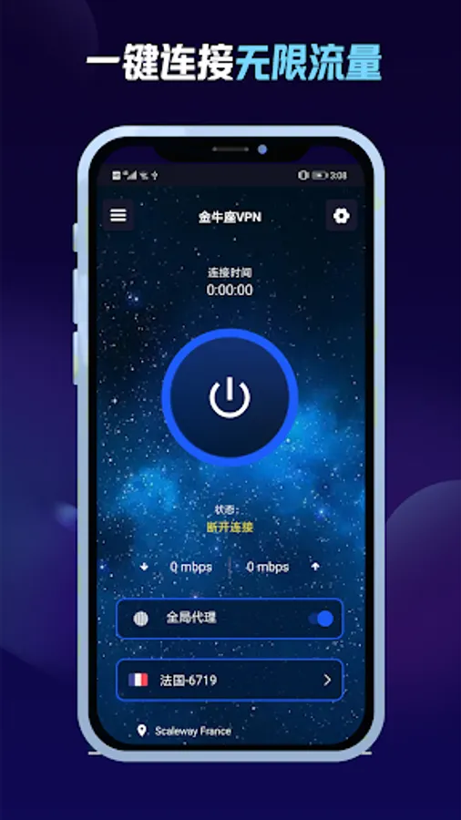 ✓ One-click connection: You can connect to the anonymous and secure global Internet with just one-click connection;