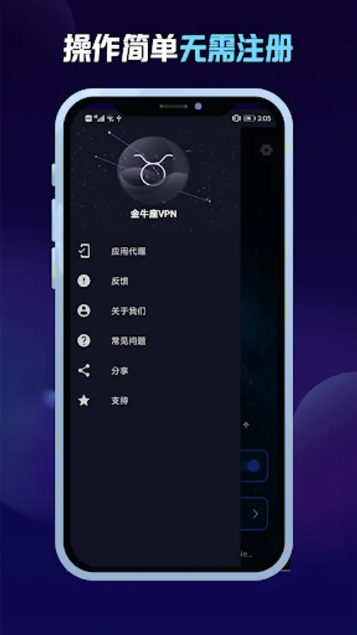 ✓ Simple: No registration, simple interface, no complex configuration, just one-click link to connect to the global Internet;