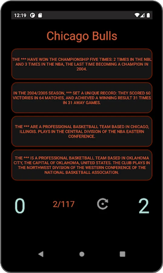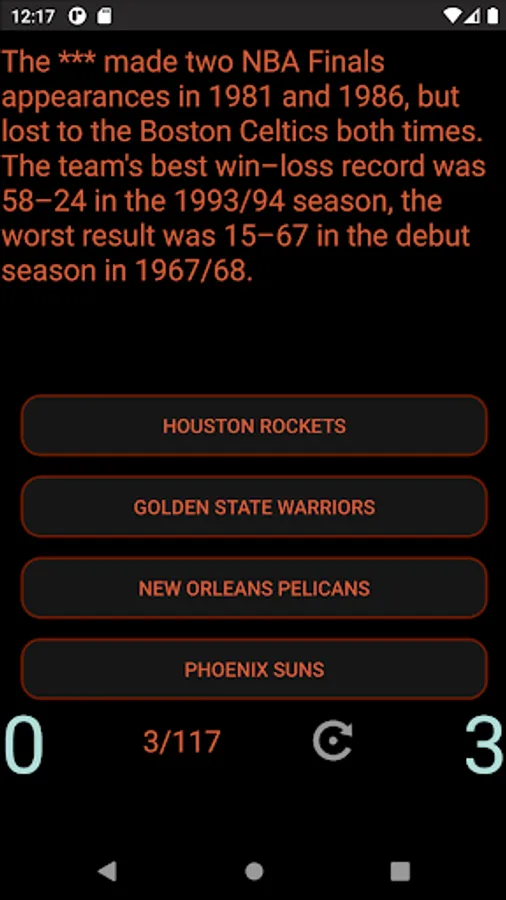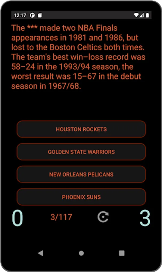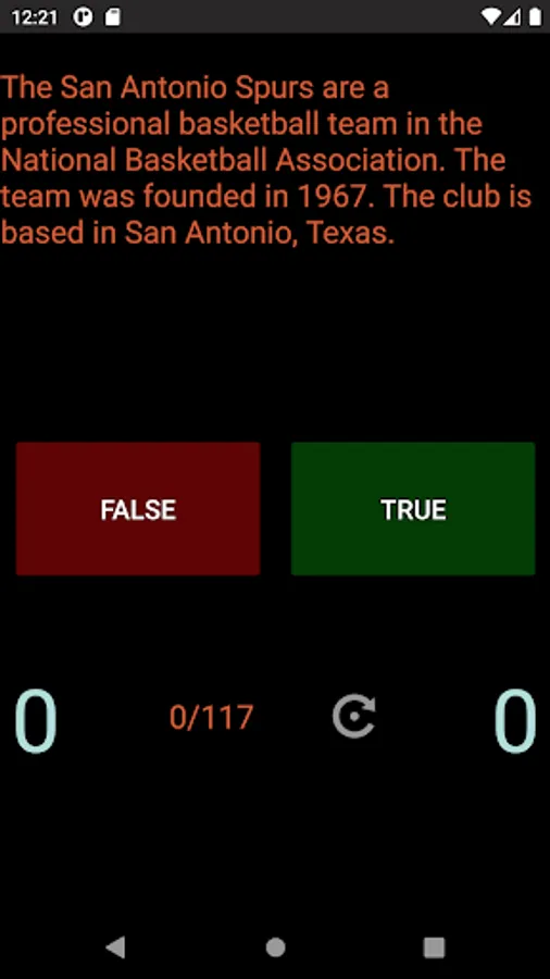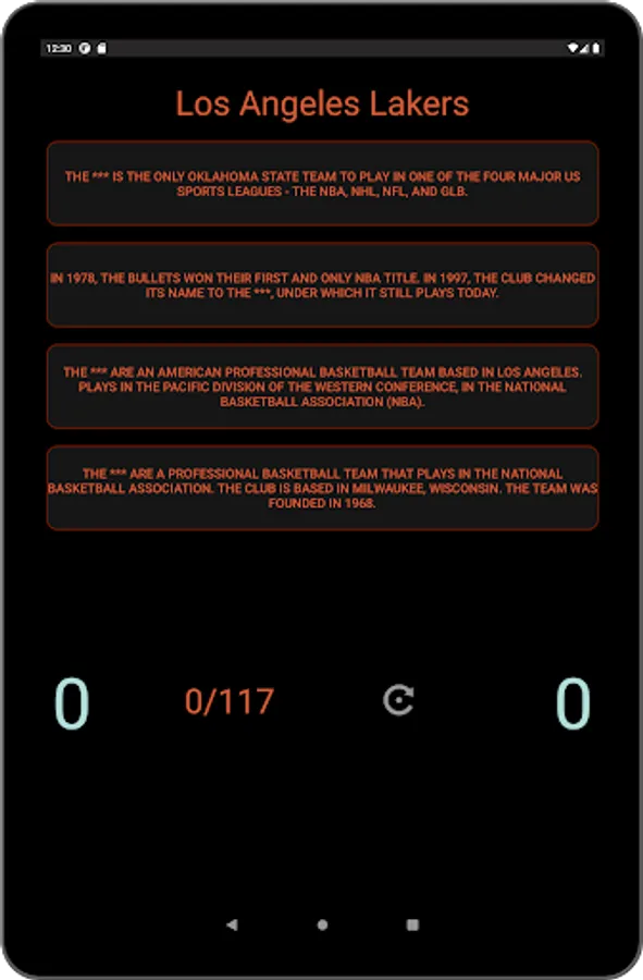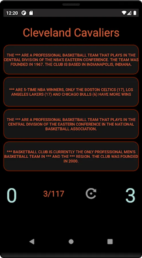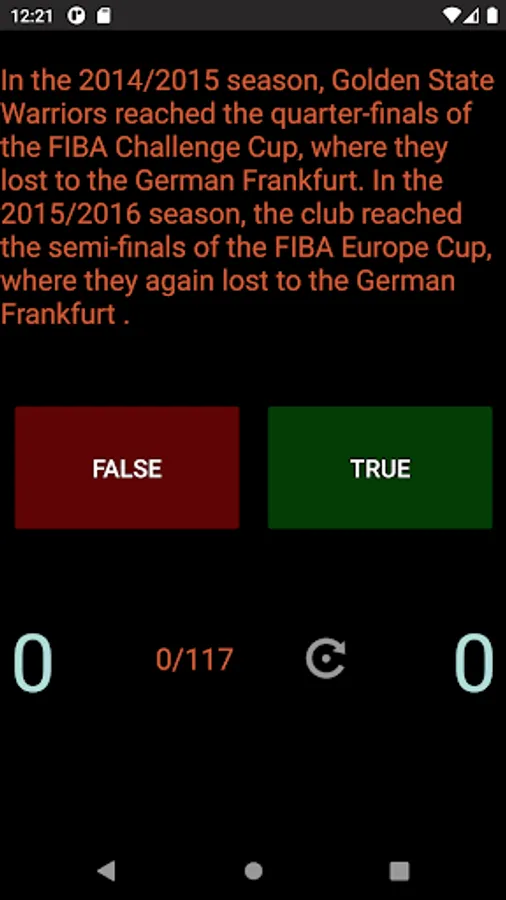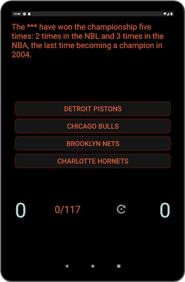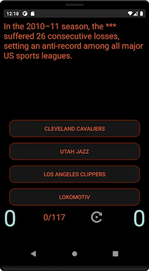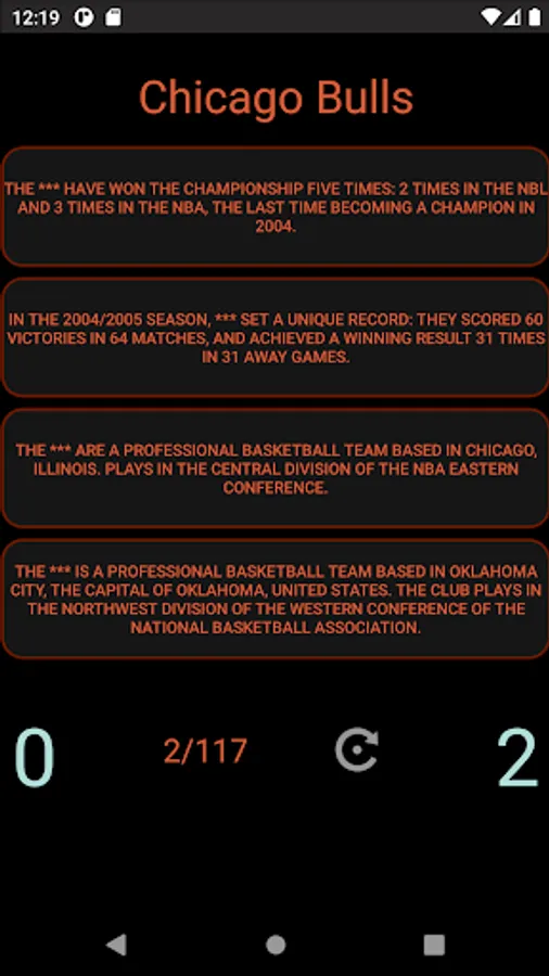 You can check your knowledge in 3 modes: choose a basketball club for a phenomenon/fact/history, or match a phenomenon/fact/history to a basketball team, or answer "true" or "false" in the same mode. In each of the 3 modes, you can start over, and at the end you will see the percentage of correct answers.