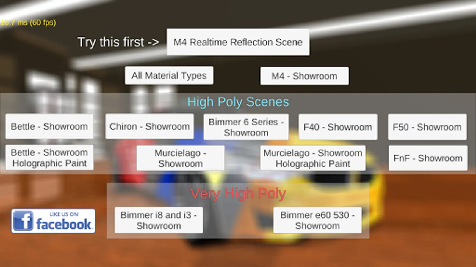 In showroom scenes cubemap were used for reflections, not the realtime reflections!