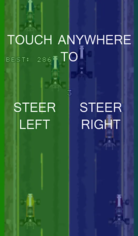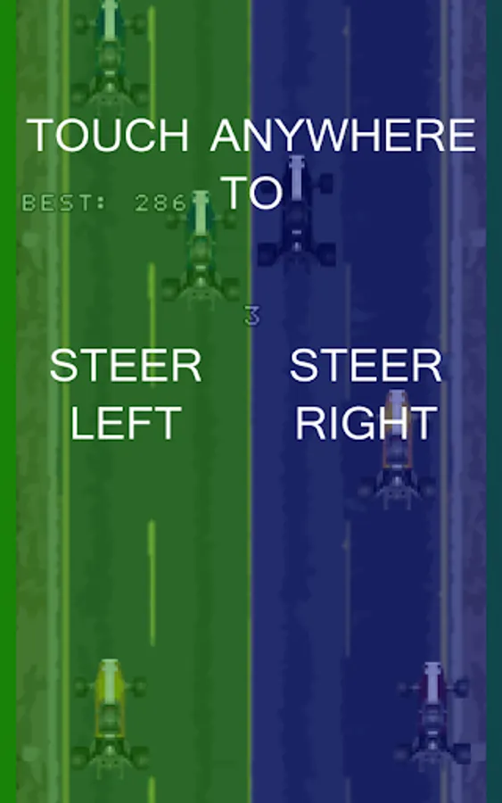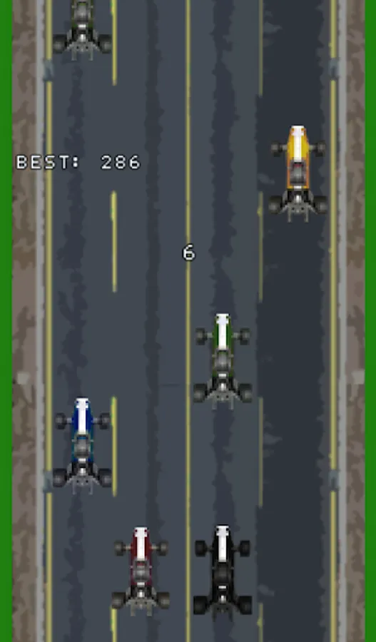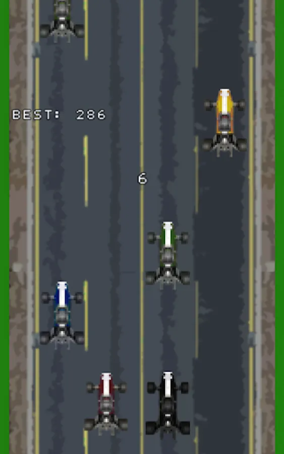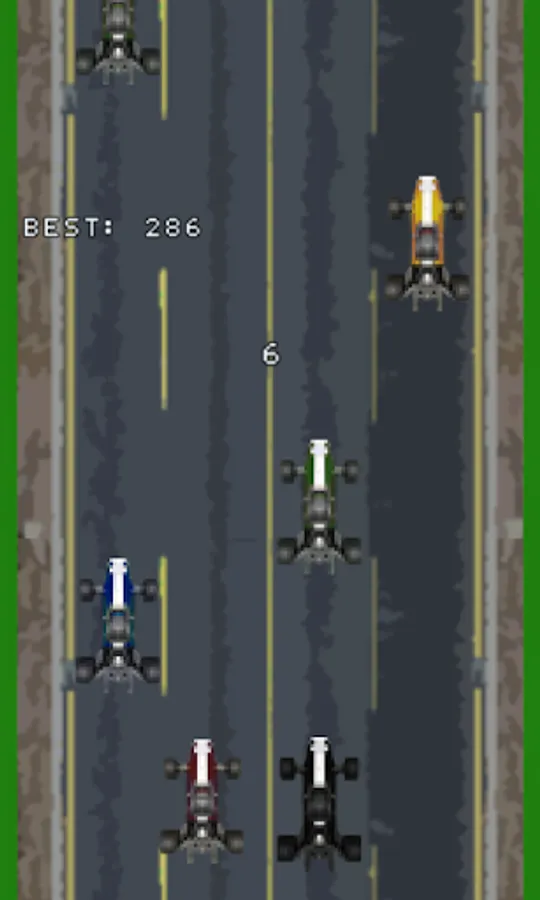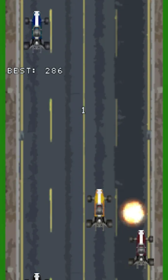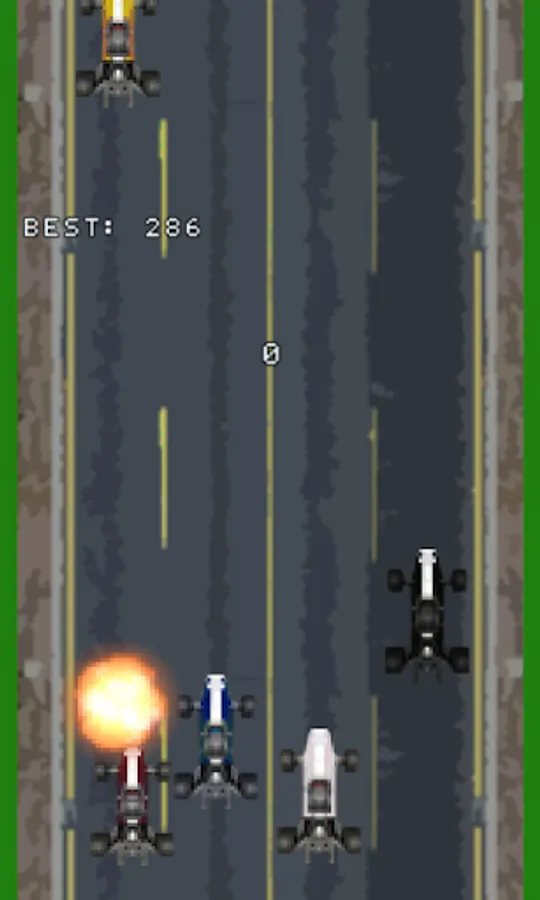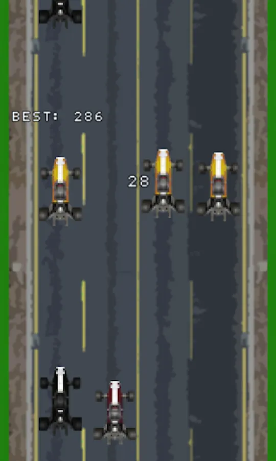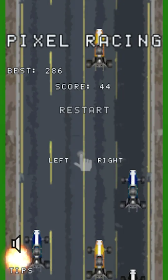 In Pixel Racing your brakes are broken, avoid collision with opponents by steering your race car. Survive as long as you can. Collect points by passing your opponents race car or by hitting gold collored cars on their side while you passing them.