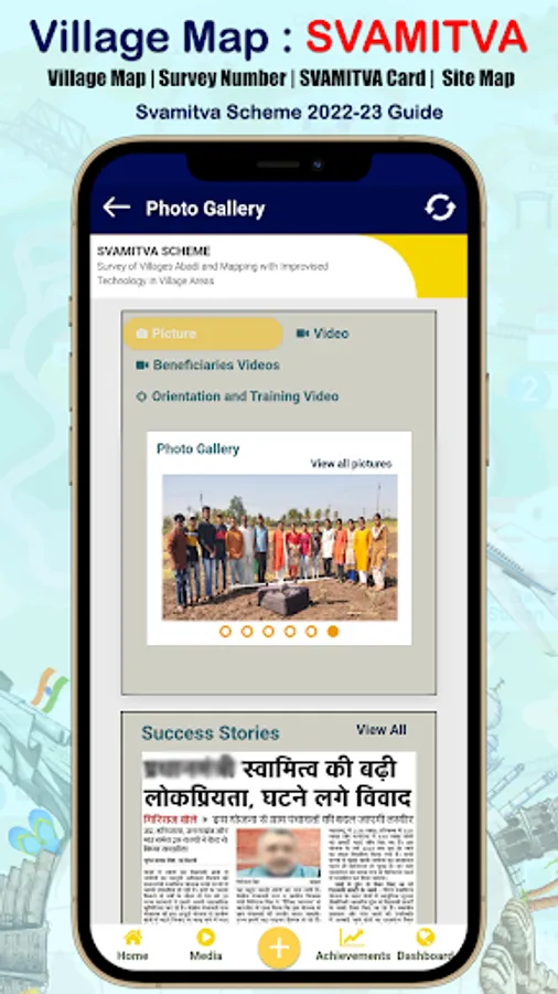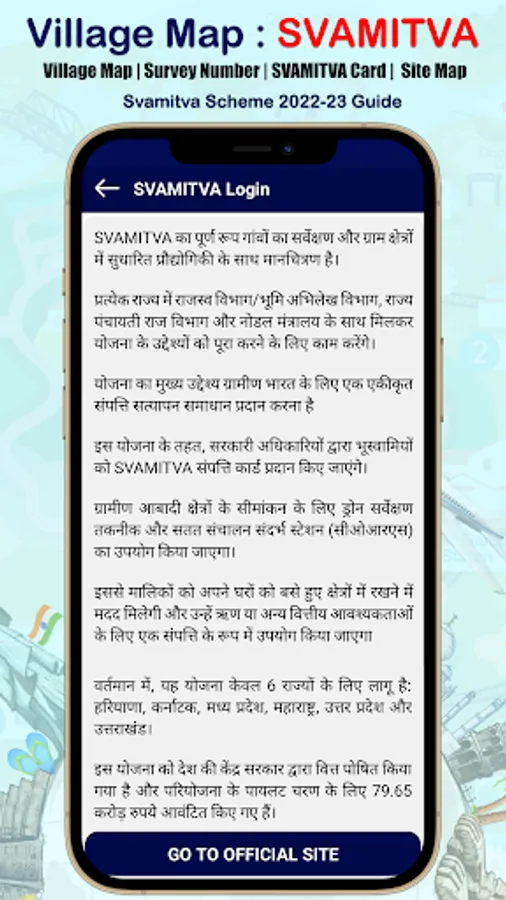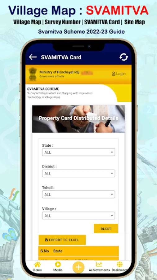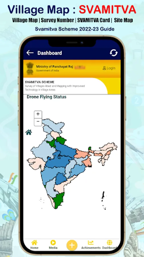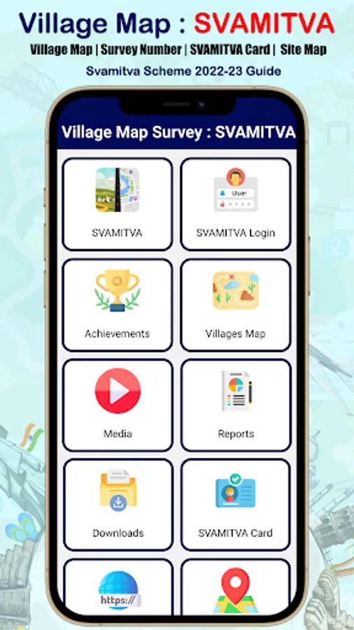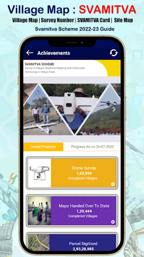 In this app, you will come to know about Drone Survey Completed (SOI), Property Card Distributed Details, Property Card Prepared Details, Village Map, All state Village map, survey number, SVAMITVA login, svamitva card, site map, publication, success stories.