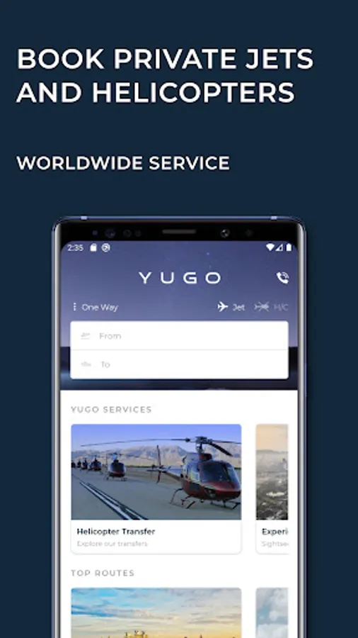 The Yugo Plus app provides its users with a simple way to search, book, and fly private jets and helicopters worldwide.