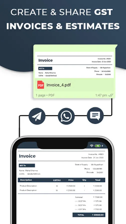 ๐ Create Invoice & Bill in Qartplus which is also known as Estimate/Quotation and Invoice Generator, which is very easy to use to Create Invoice, Bills, Estimate, Expense, Inventory and Accounting to the Customers in every Business. Qartplus helps to Share Receipts and Invoice very easily. Invoice and Expense can be managed very easily with accounting and billing. Qartplus Invoice & bill generator helps in sending Invoice, Billing, Estimate, Proforma Invoice, Expense, Inventory, reports, catalog images and transaction details by Qartplus Business Accounting App.