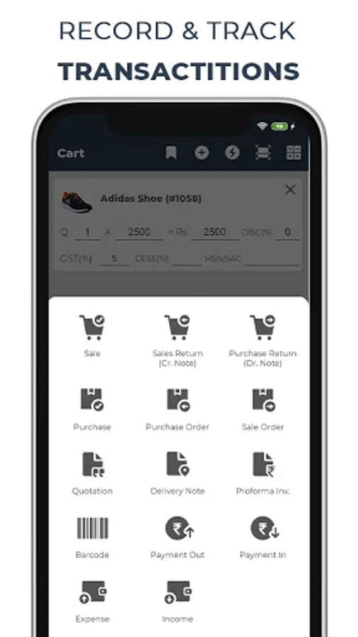 ๐งพ Create Transactions like Sale & Purchase, Debit & Credit note
