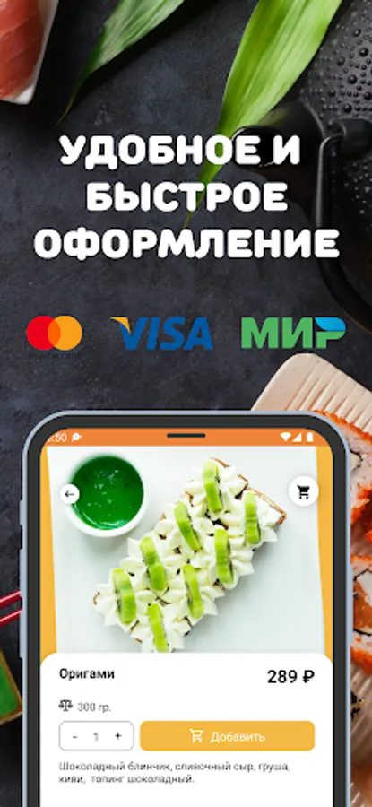 Simple and convenient mobile application for ordering food in Yurga. Now, a full menu of SushiEm and sushi delivery in Yurga have in your pocket. Order delivery is possible in 1 minute when connected to the Internet.