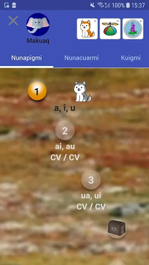With this app you have full access to Yugtun language exercises covering vocabulary, word construction, and sentence building. All of the lessons follow dual-language lesson plans and are intended to supplement existing Yugtun immersion school classrooms at the second grade level. Also, these lessons are available for free to the public and are perfect for first-time learners of Yugtun. Please stay tuned for more lessons to come.
