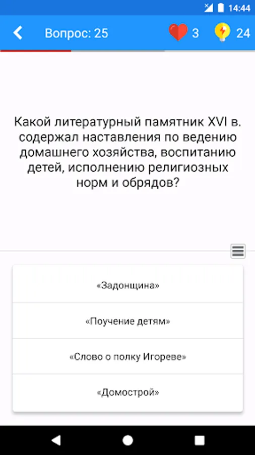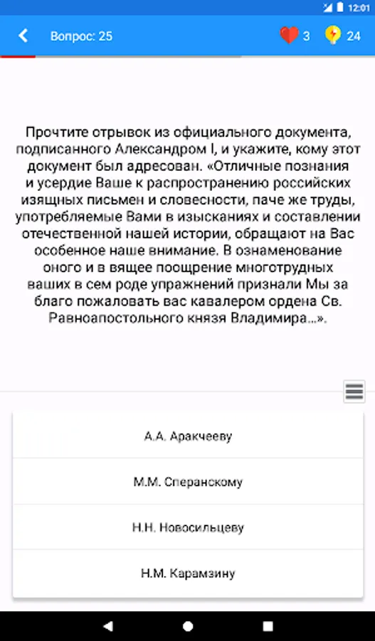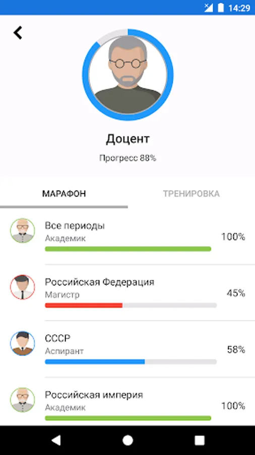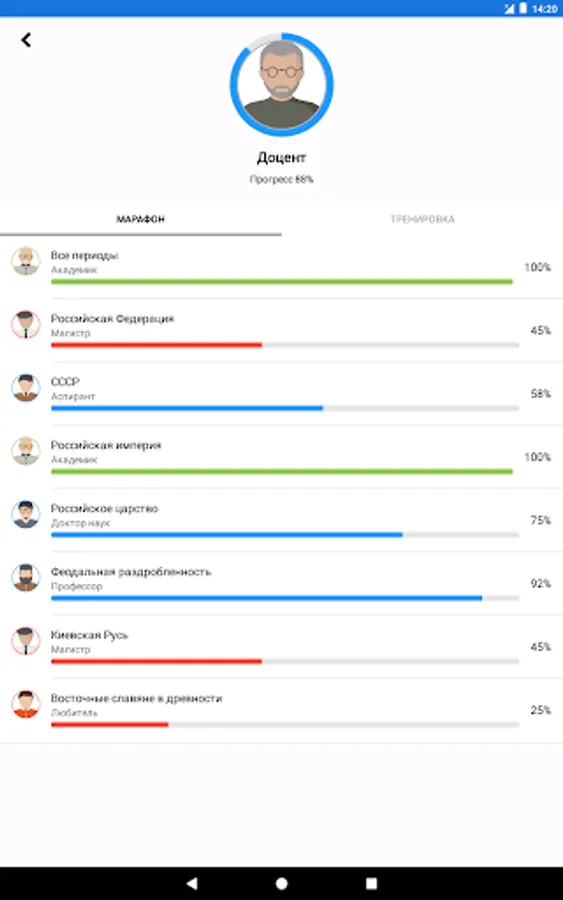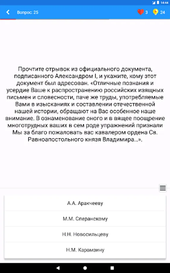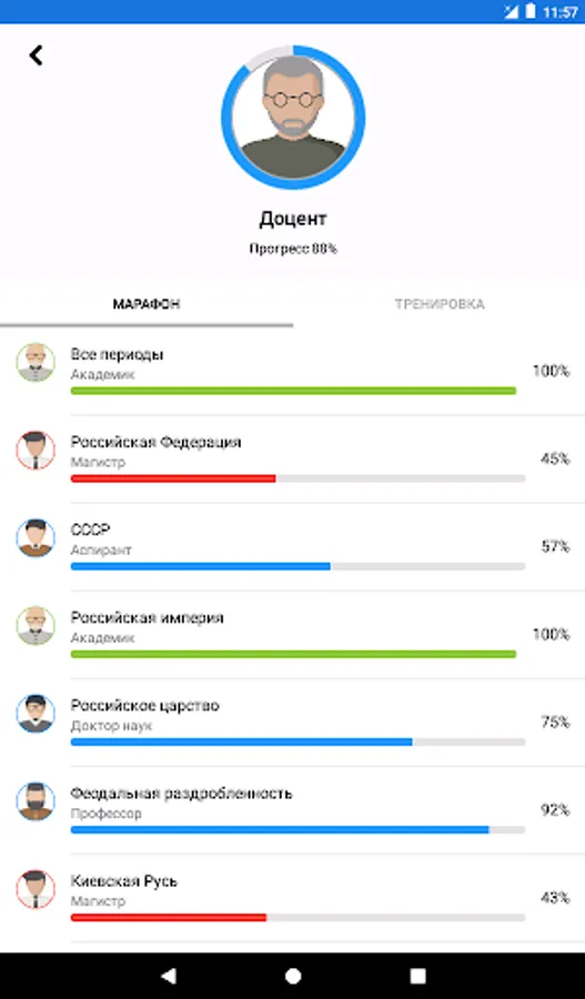 Questions are distributed by difficulty level. Basic levels affect key events and facts, allowing you to become a true connoisseur of history. An in-depth level will provide you with the opportunity to feel like a real expert in the field of history, since you will need to know the tiniest facts.