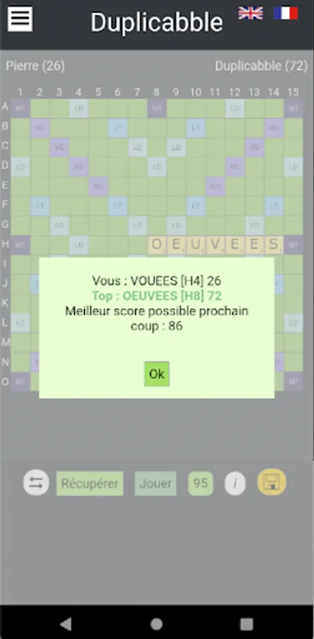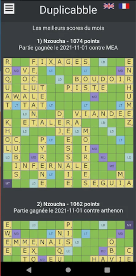 Recently, and many of you have asked us, you can now play in the classic mode, with a draw specific to each player, possibly favoring a strategic placement rather than a word bringing in the maximum points.